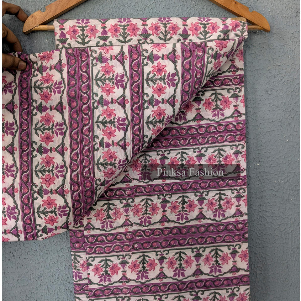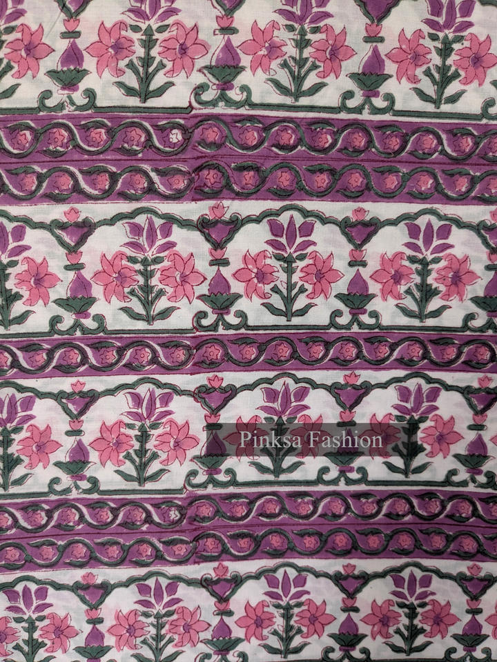 Tela de algodón india hecha a mano con estampado floral, tela étnica con estampado Sanganeri para prendas y vestidos de mujer.