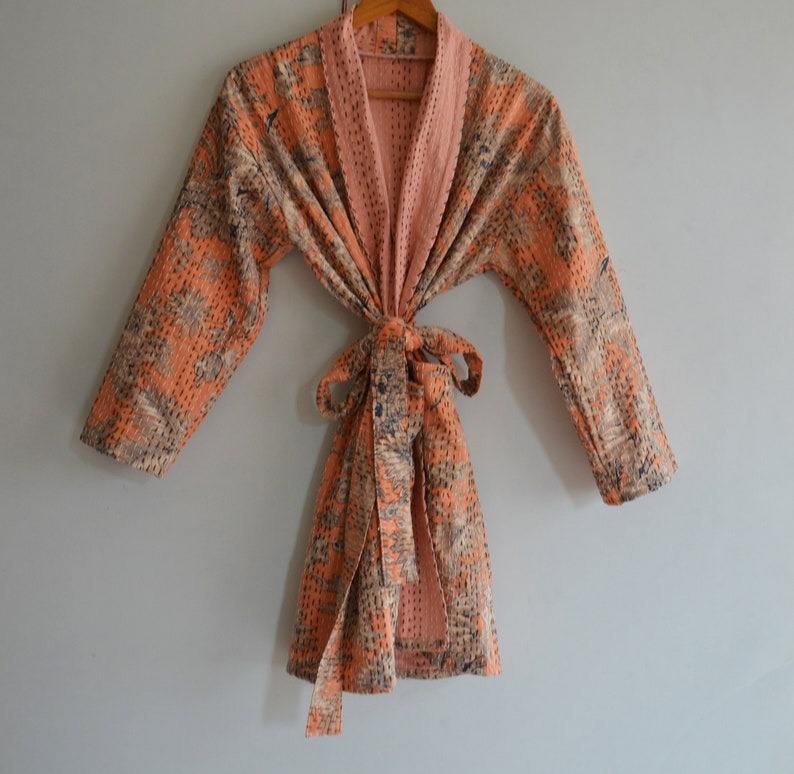 Chaqueta India hecha a mano Kantha Varsity para mujer, edredón con estampado de bloques, peso ligero, abrigo cálido de invierno para fiesta