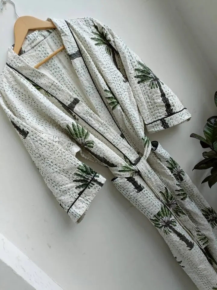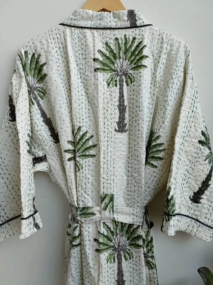 Bata Kimono Acolchada Kantha Hecha a Mano en India para Mujer, 100% Algodón, con Volantes, Doble Capa, Largo hasta el Suelo, Cintura Natural, Precio al por Mayor