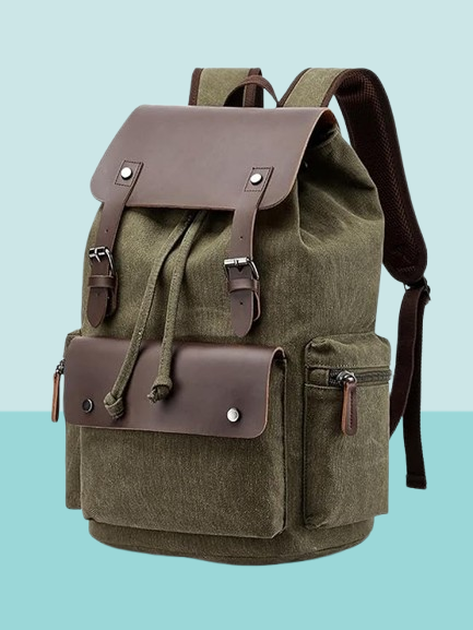 Mochila grande India hecha a mano con diseño de tapa enrollable, bolsa para ordenador portátil de viaje al aire libre de negocios, lona impermeable, cierre de cremallera de cuero