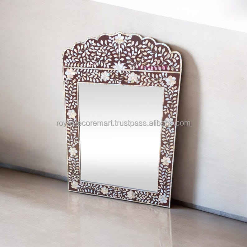 Espejo de Pared Decorativo para el Hogar con Diseño Floral con Incrustaciones de Nácar Hecho a Mano en India, Espejo de Pared para Baño de Royal Decore Mart