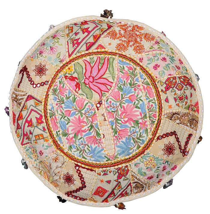 Cubierta de Taburete de círculo de piso de retazos hecha a mano India cubierta de PUFs de estilo Rajasthani decorativa bordada para sala de estar