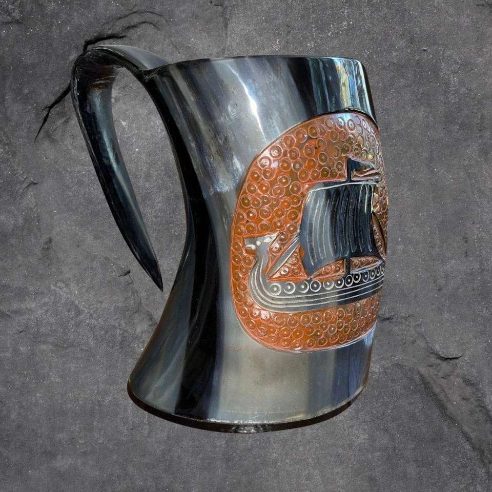Jarra de Cuerno para Beber, Diseño Animal Vikingo, Pulida a Mano en India, Ecológica, con Material Orgánico, por Arif Handicrafts