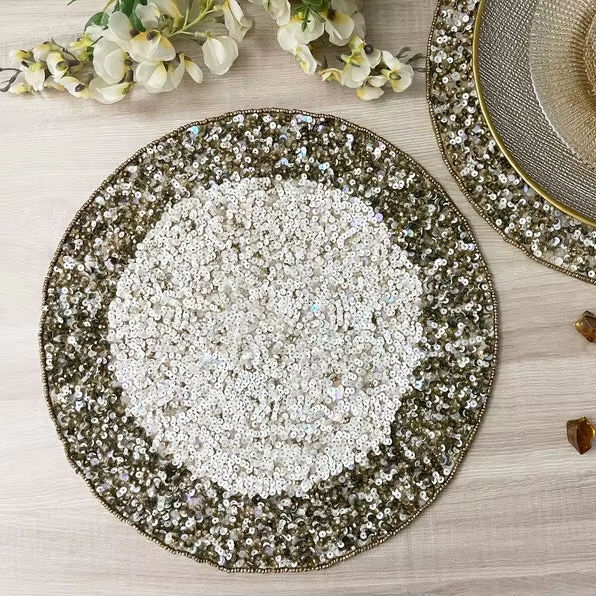 Manteles Individuales de Vidrio con Cuentas de Colores, Hechos a Mano en India, Nueva Tendencia, Forma Redonda, Bordados, para el Hogar
