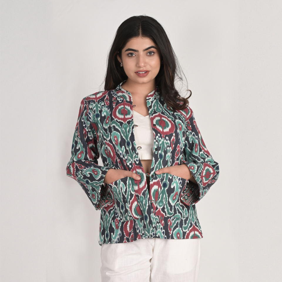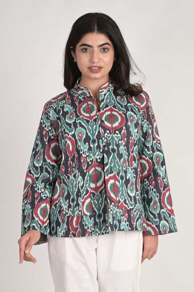 Chaqueta de tela de algodón acolchada hecha a mano de La India, abrigo bohemio elegante para mujer, chaqueta acolchada hecha a mano Reversible para ella