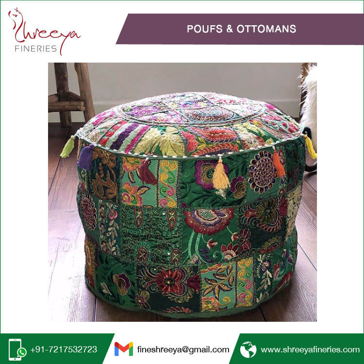 Pufs y otomanos cuadrados de diseño bohemio hecho a mano indio Patrón Kantha vintage a precio a granel