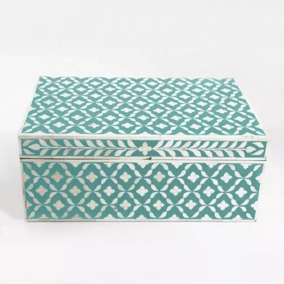 Caja de hueso de alta calidad India Newly Aqua Indian Mother Of Peal Caja decorativa Nuevo diseño Orgainser caja de oficina decorativa