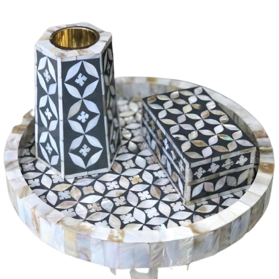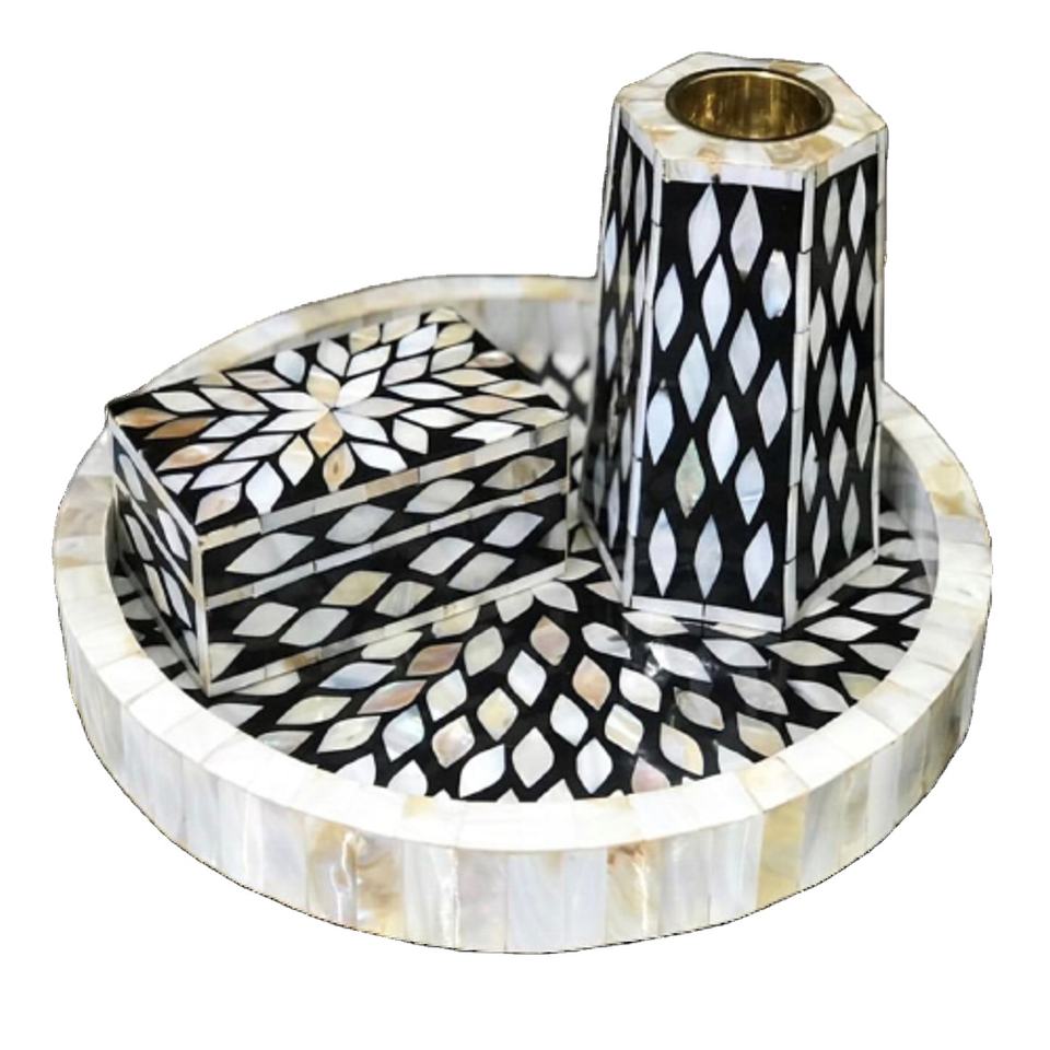 Juego de bandejas de nácar hechas a mano de La India, juego de fregona con quemador Bakhoor de tamaño personalizado para uso en Ramadán, incrustaciones de Metal