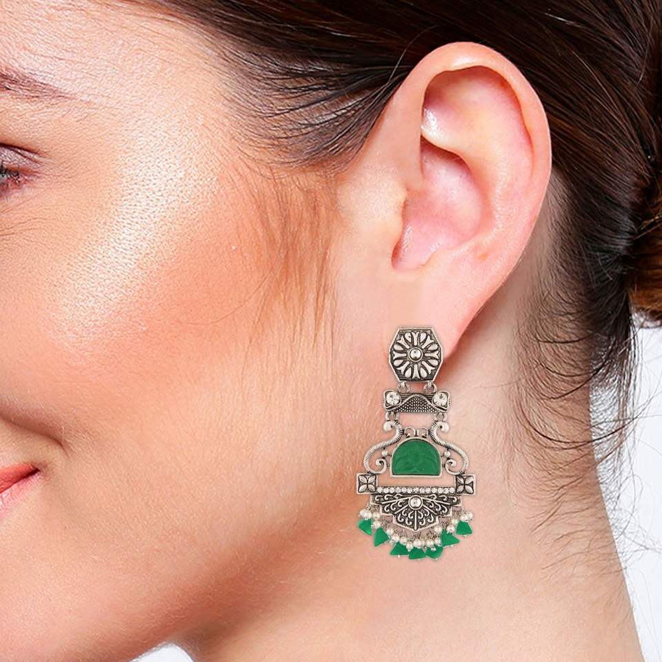 Diseño:Conjunto de pendientes de plata oxidados vintage Boho hecho a mano antiguo