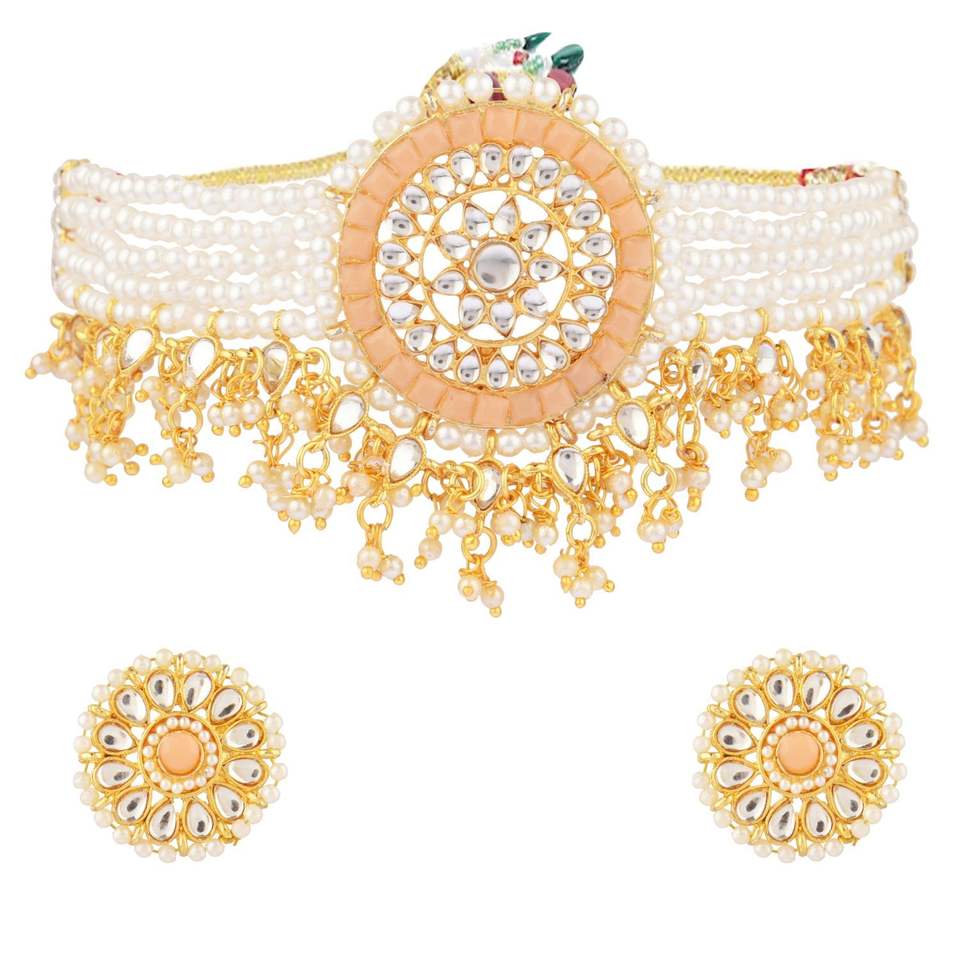 Indian Faux perla con cuentas gargantilla collar conjunto