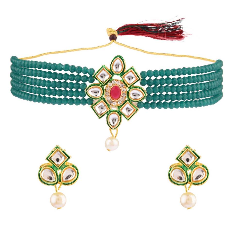 Diseño:Indian Faux perla con cuentas gargantilla collar conjunto