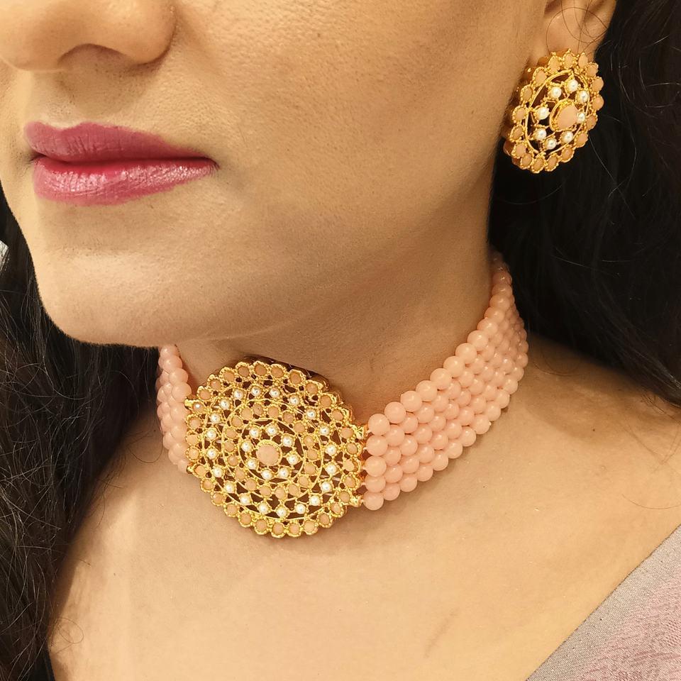 Joyería india, Gargantilla con cuentas de perlas de múltiples capas, collar, pendientes, fabricación de joyas, color melocotón