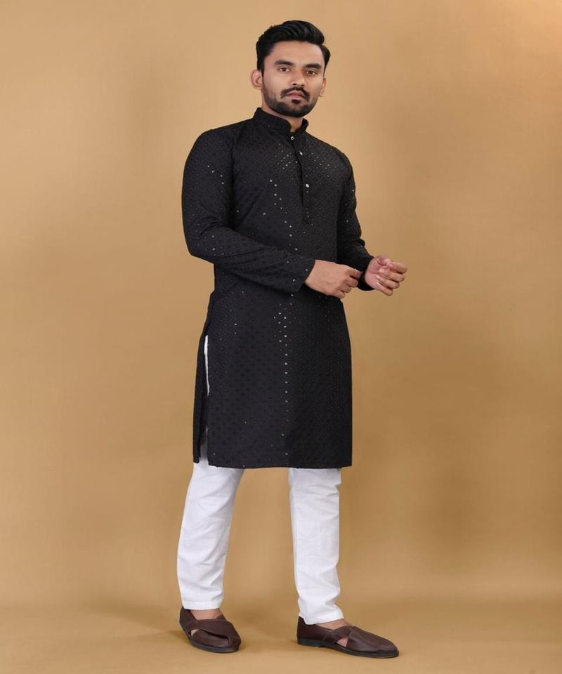 Abaya india para hombre en elegante algodón Khadi de invierno con manga larga, estilo modesto musulmán, cuello con botones y detalles de cadena.