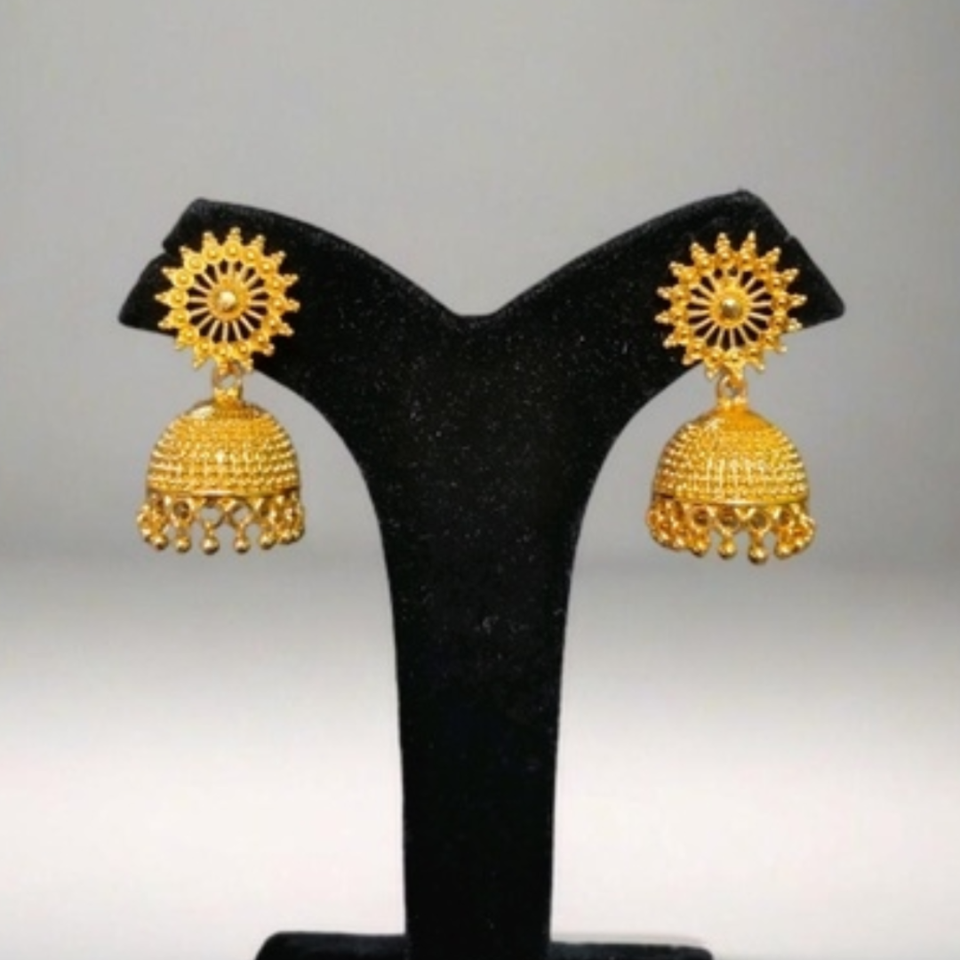 Juego de pendientes hechos en India con diseño tradicional de 22CT chapado en oro estilo Jhumka pendientes joyería para mujer