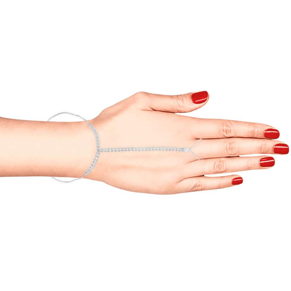 Elegant delicate sparkling CZ bolo finger ring hand chain tennis