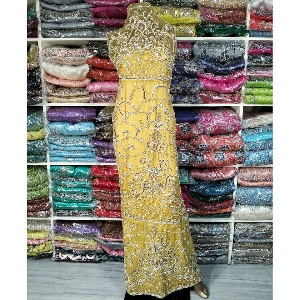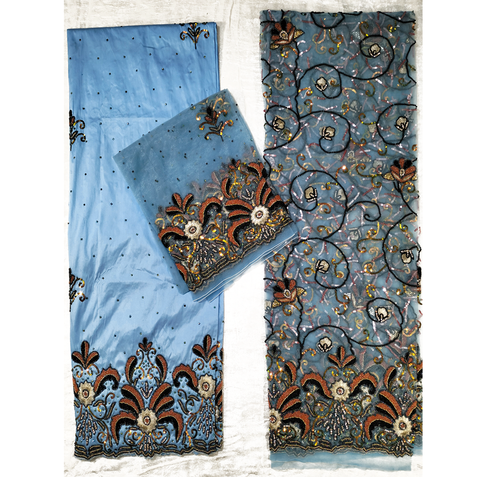 Característica:Encaje neto con cuentas pesadas + tela de seda