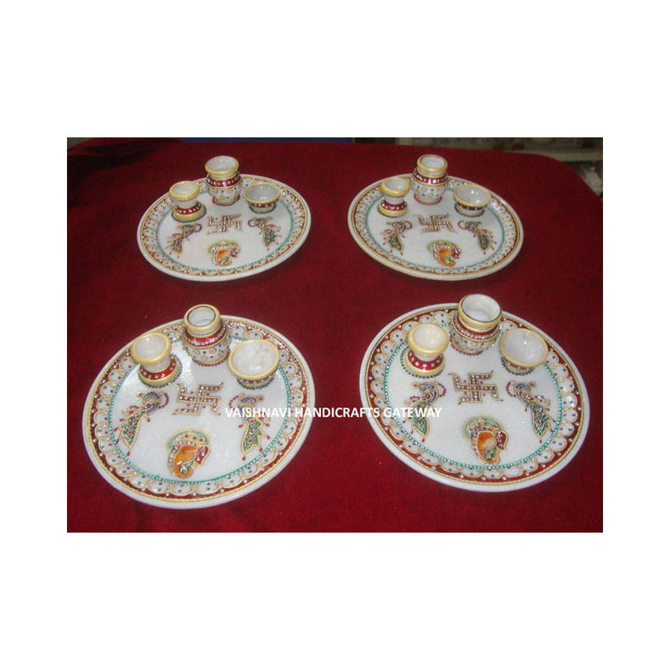 Product Name:Indian Marble Gold Painted Pooja Plate For Decoration