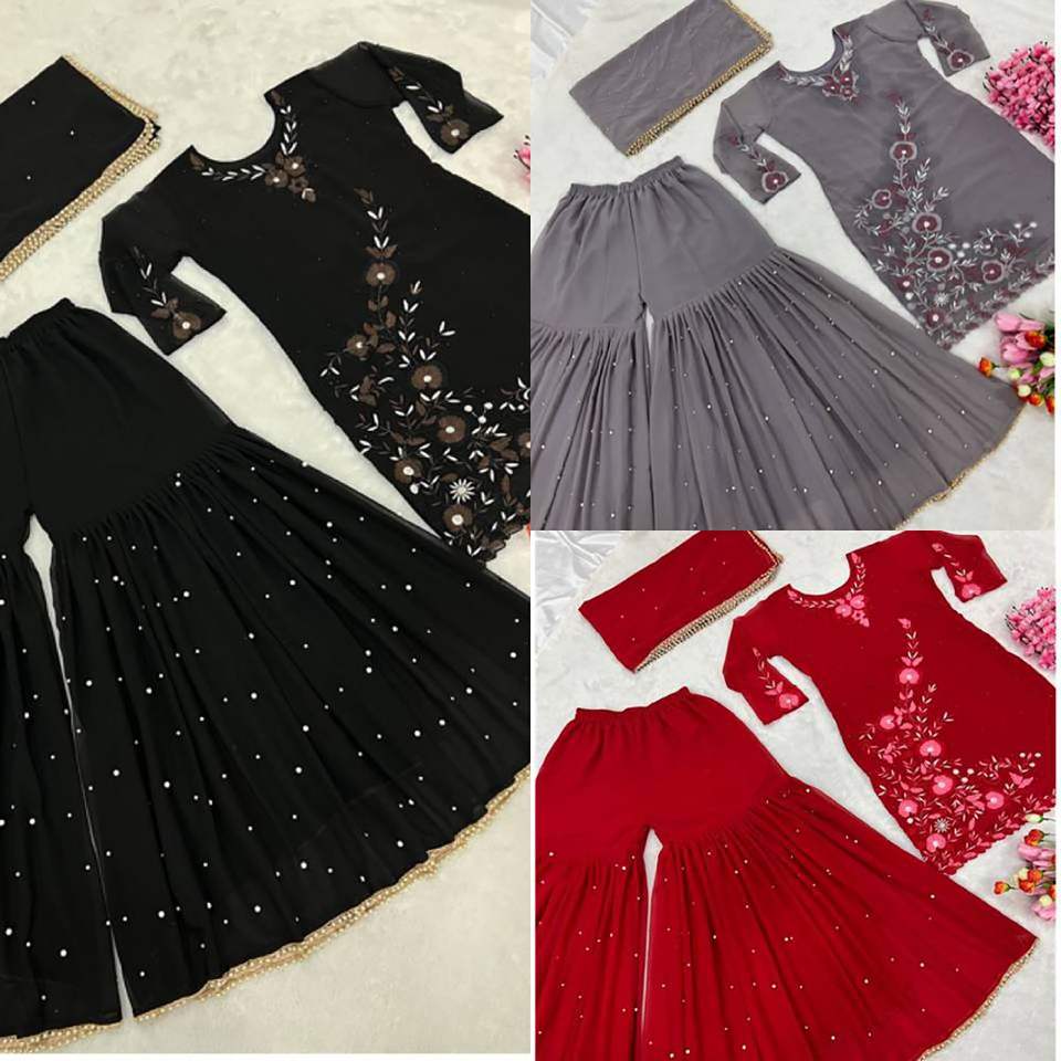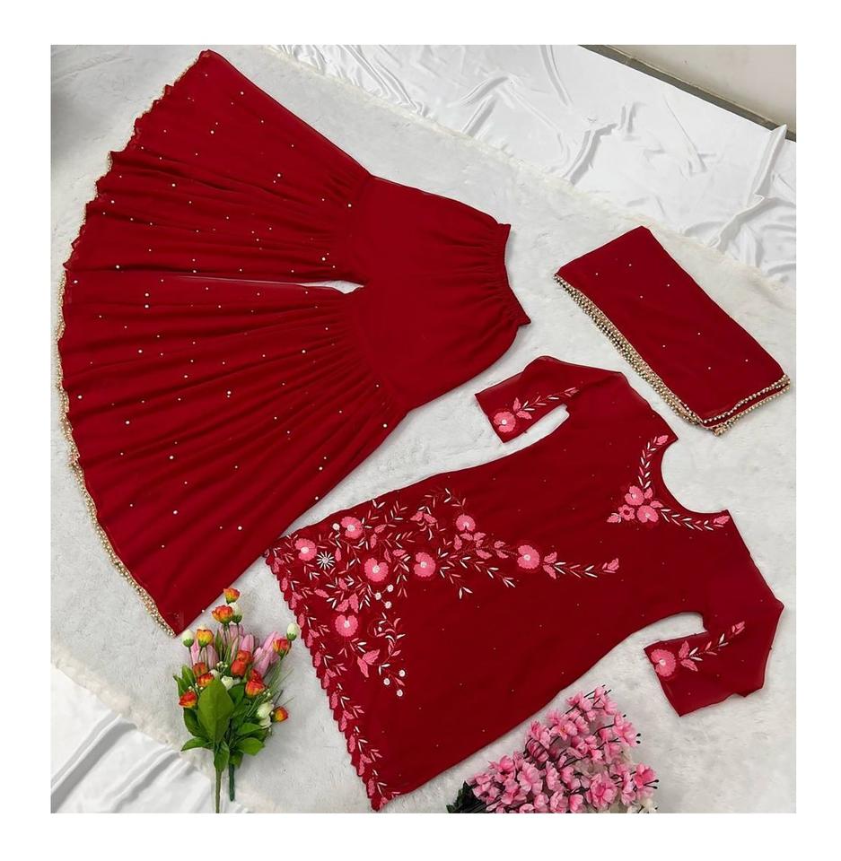 Nombre del producto:Top de la mirada del desgaste del partido, Sharara Palazzo y Dupatta
