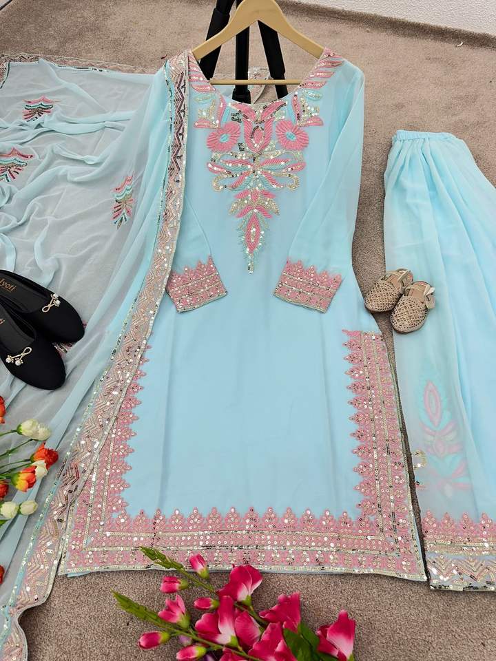 Característica:Juego recto Kurta Sharara & Dupatta
