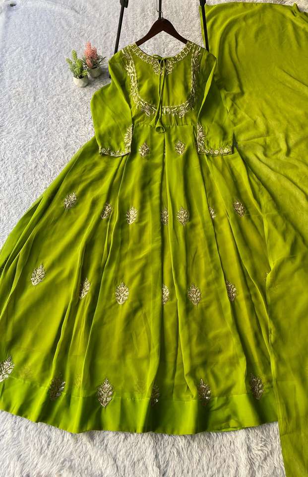 Hermoso Vestido Anarkali de Diseñador Indio Pakistaní, Tela Georgette, Adorno de Espejo, para Fiesta, Boda, Casual, Tradicional, Ropa de Mujer