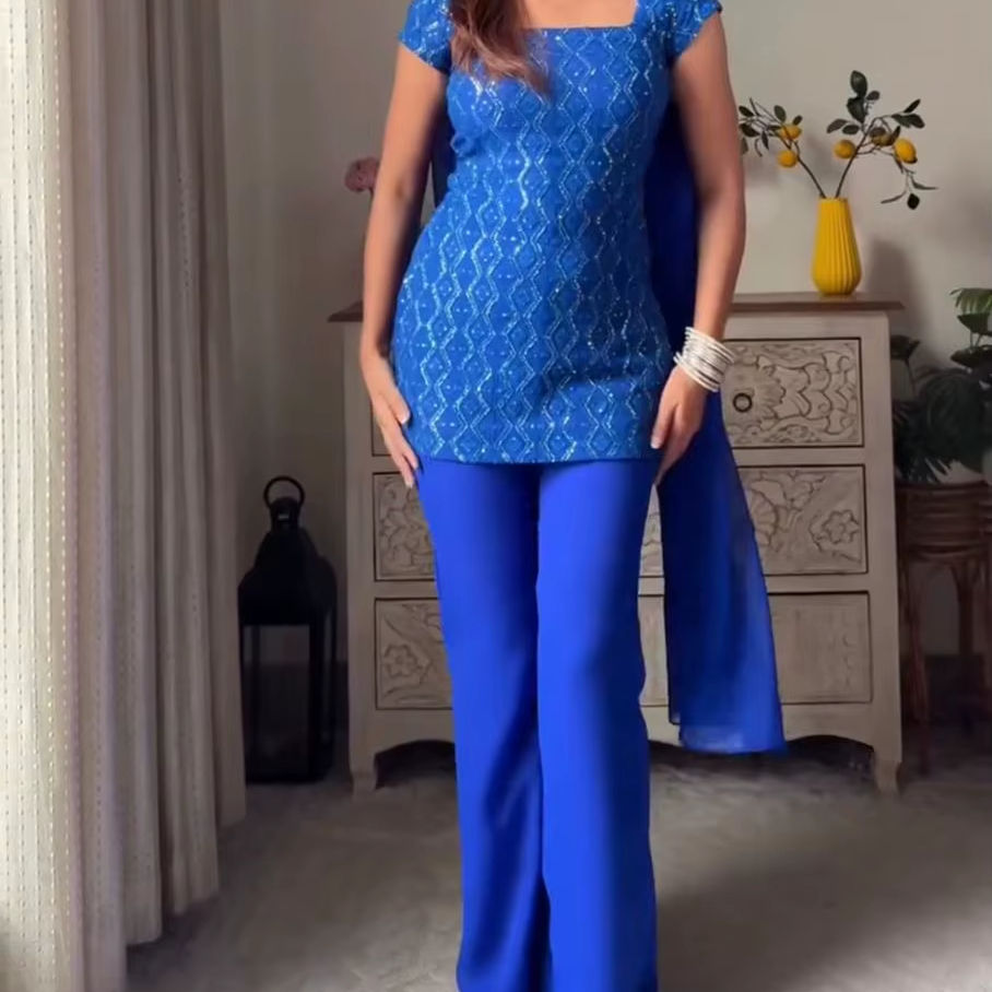 Conjunto Sharara de Georgette Hermoso y Elegante de Estilo Indio-Pakistaní, Traje Étnico Vintage para Fiestas y Bodas para Mujer