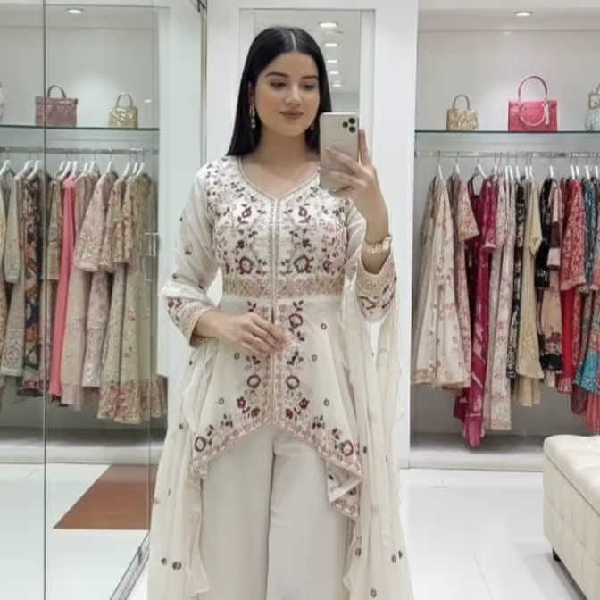 Conjunto Sharara de Seda Rangoli Pura, Hermoso y Elegante, Estilo Étnico Pesado, para Fiestas y Bodas, para Mujer