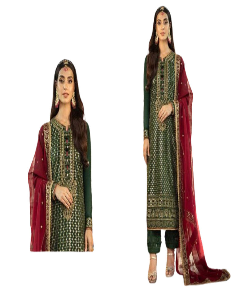 Trabajo:Faux Georgette pesado con el trabajo de la secuencia del bordado