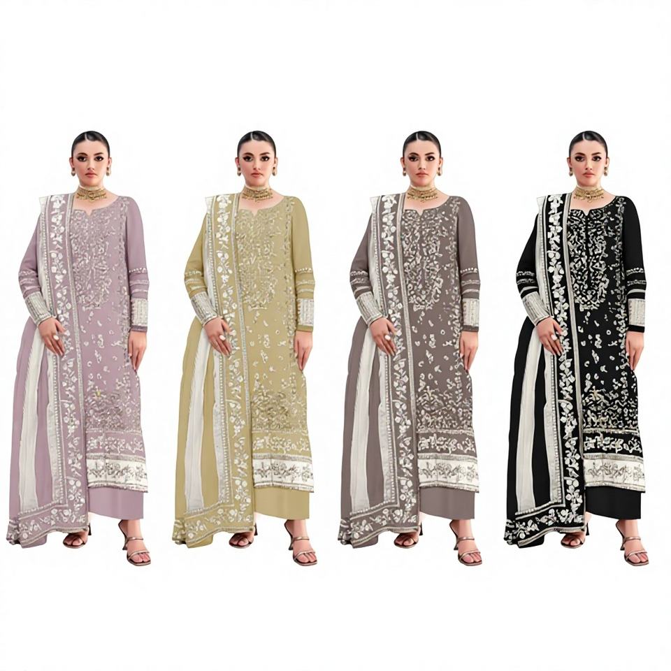 Salwar Kameez de Mujer para Eid, Estilo Indio y Pakistaní, en Faux Georgette con Bordado y Encaje, Largo hasta el Tobillo, Corte Regular, para Fiestas de Invierno