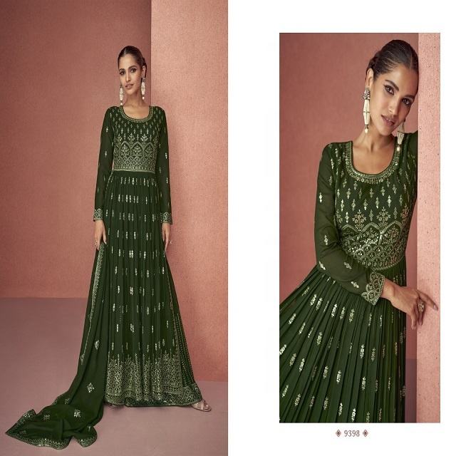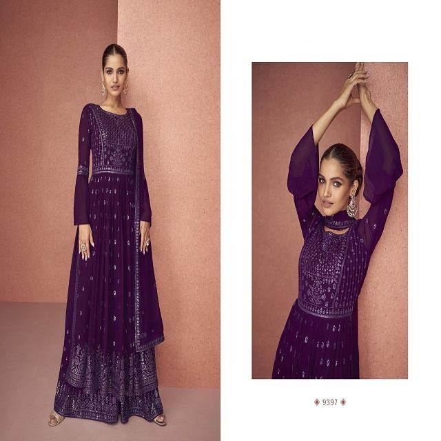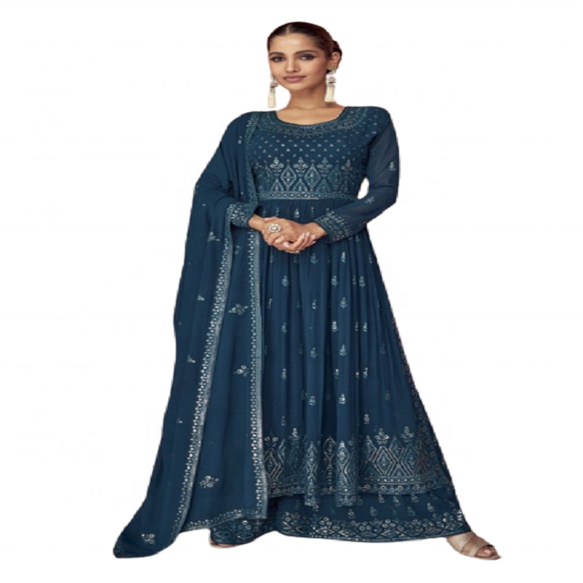 Traje de trabajo pesado de la India, paquistaní, Georgette, trabajo con secuencia bordada, Nyra Cut, salwar, último diseño