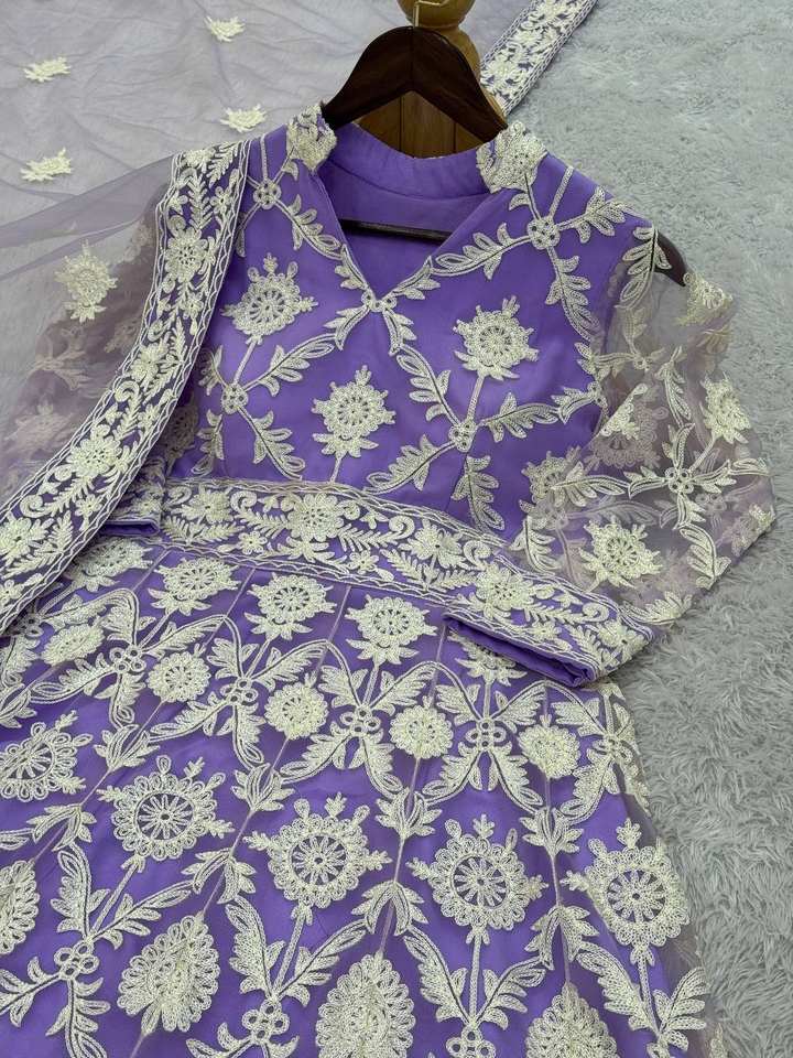 Estilo indio pakistaní, secuencia de red pesada, trabajo de bordado, trabajo de piedra, Anarkali vestido largo, conjunto de red Dupatta, ropa de fiesta para mujer