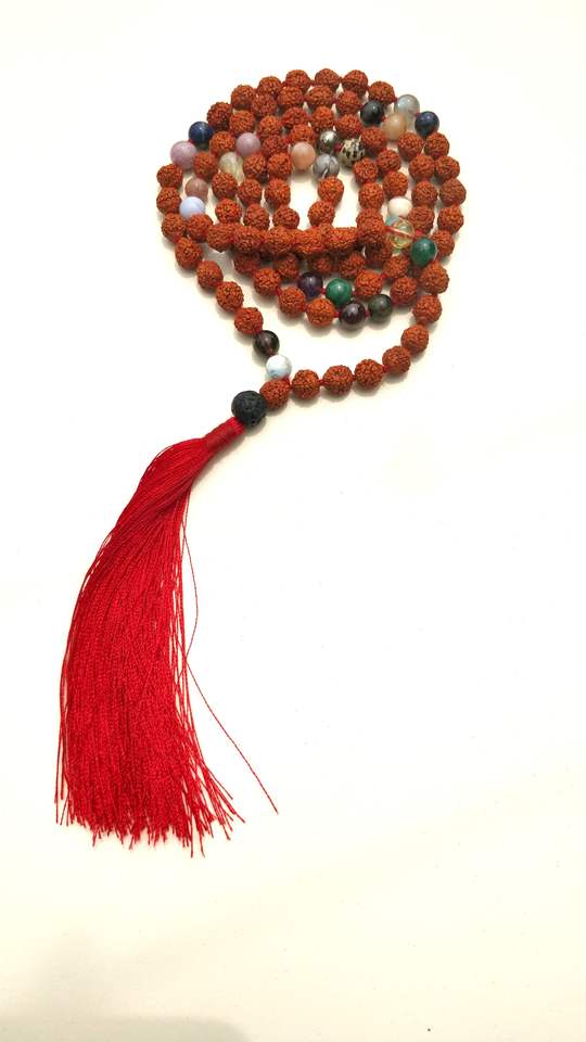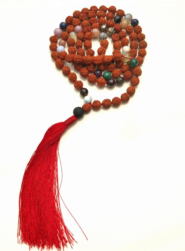 Gema de Rudraksha india, cuentas de Mala espiritual anudadas
