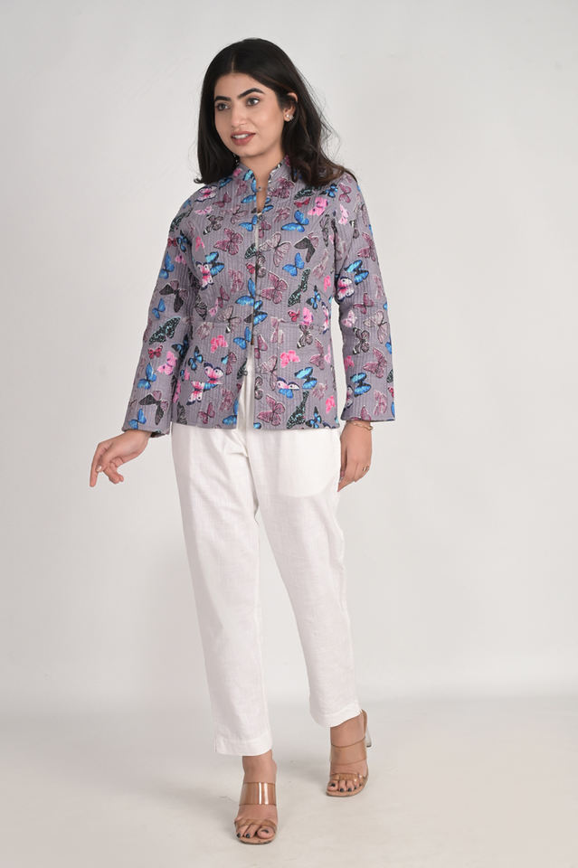 Chaquetas de invierno de algodón indio:Chaquetas reversibles hechas a mano del kantha del algodón