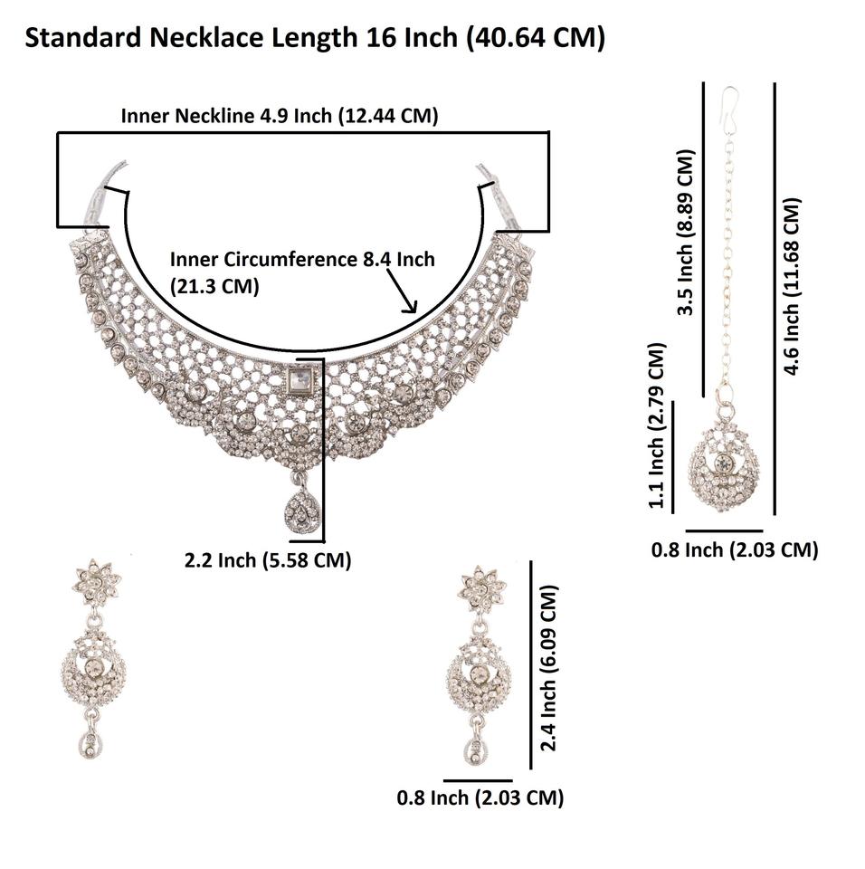 Conjunto de joyería de plata india para mujer, Gargantilla nupcial de cristal austriaco, collar, pendientes, cadena de cabeza Maang Tikka para bodas