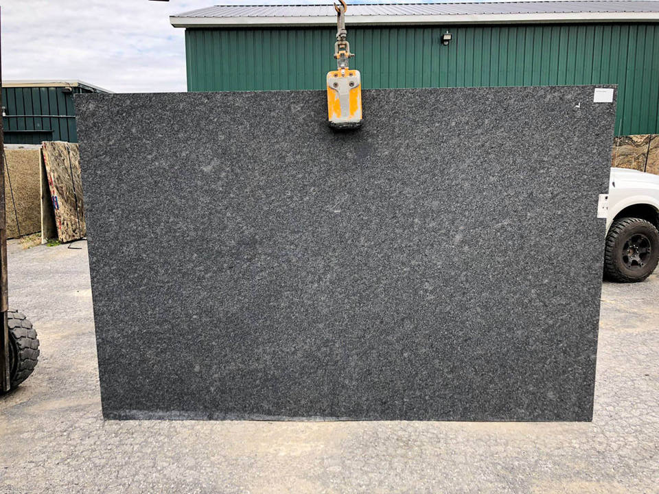Azulejos de losa de granito gris de acero indio Acabado superficial pulido para pisos de sala de estar interior y exterior-Alta calidad de exportación