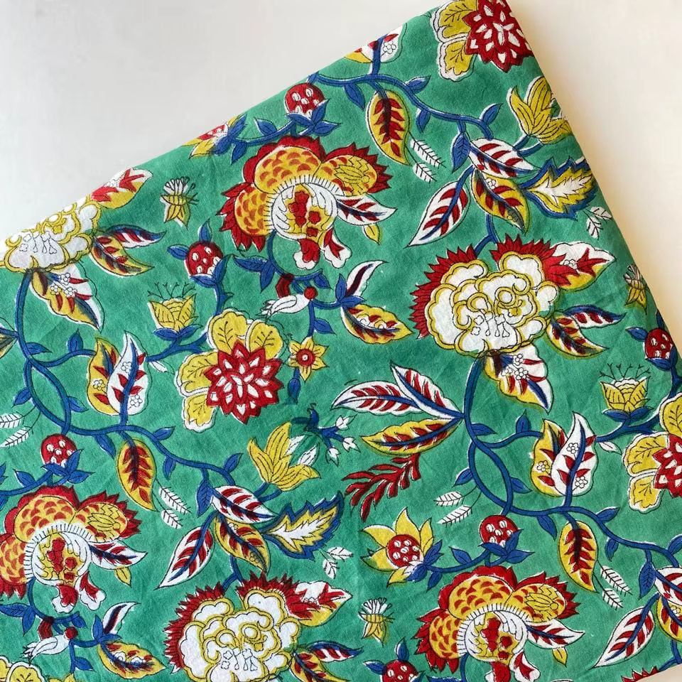 Tela de Algodón 100% Suave, Ecológica y Transpirable con Estampado Floral Estilo Indio, Teñido Natural y Tallado a Mano, para Bolsos Artesanales, Venta por Metro
