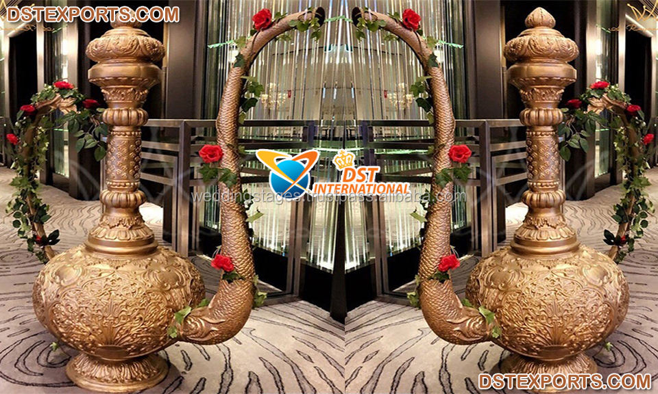 Surahi FRP de estilo indio para decoración de bodas, jarra tradicional para decoración de bodas, Surahi de fibra con acabado dorado para decoración del Reino Unido