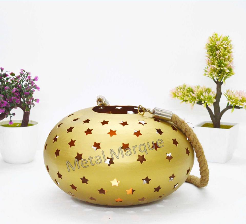Estilo indio hecho a mano diseño láser estrella recorte linterna elegante oro linterna hogar Navidad decorativo elegante estilo moderno linterna