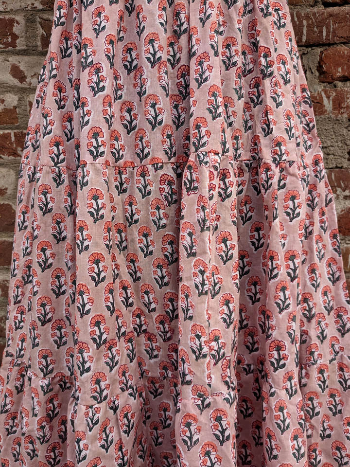 Vestido de verano de algodón puro estilo indio para mujer sin mangas con estampado Floral bohemio bloque de mano impreso ligero Maxi Logo espalda