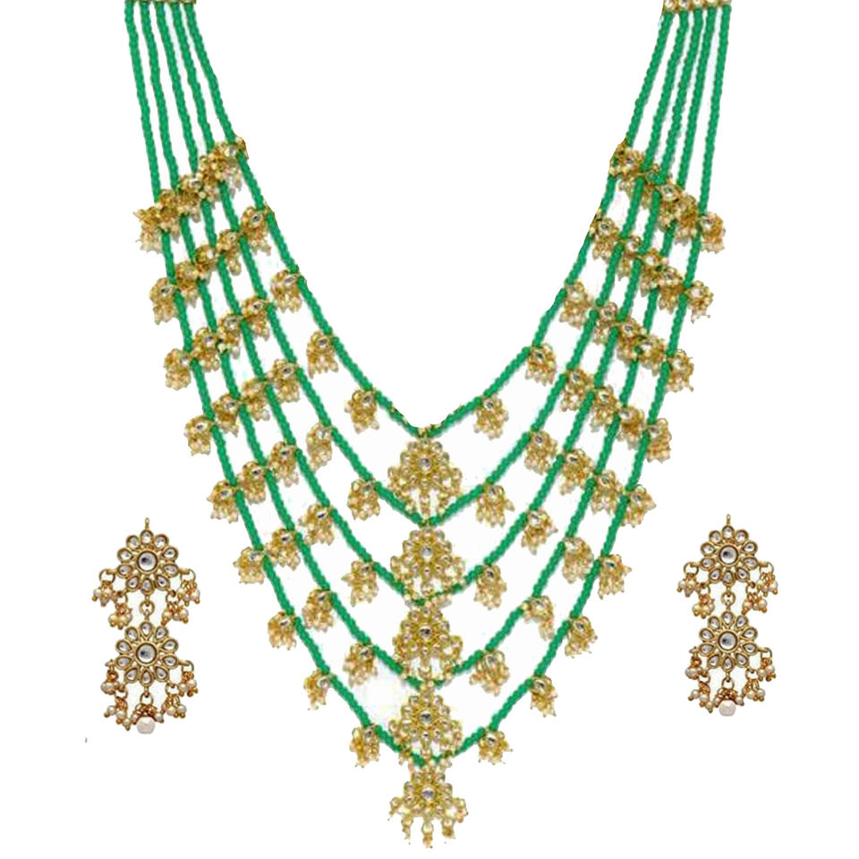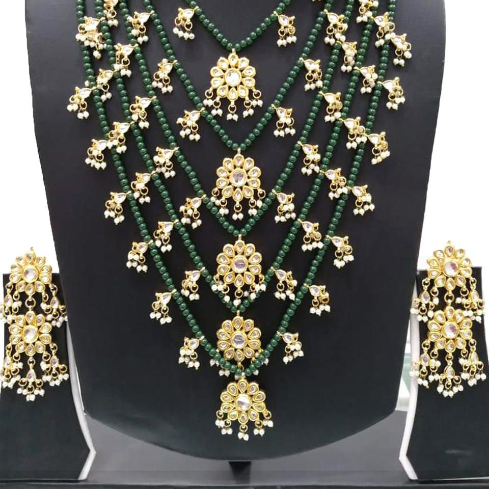 Elegante conjunto de joyería indio de perlas en capas, collar largo Kundan, pulsera de aleación de circonita, ideal para bodas, compromisos y fiestas.