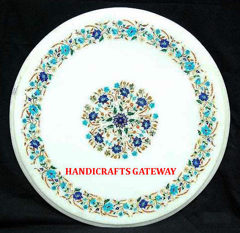 Proveedor indio, mesa con incrustaciones de mármol, forma redonda, hecha a mano, incrustaciones de mármol blanco pulido, uso superior para mesa de decoración del hogar