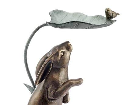 Decoración de Pascua escultura de conejo de bronce estatuilla decorativa para Navidad decoración del hogar hecho a mano figura de conejo sólido bandeja superior