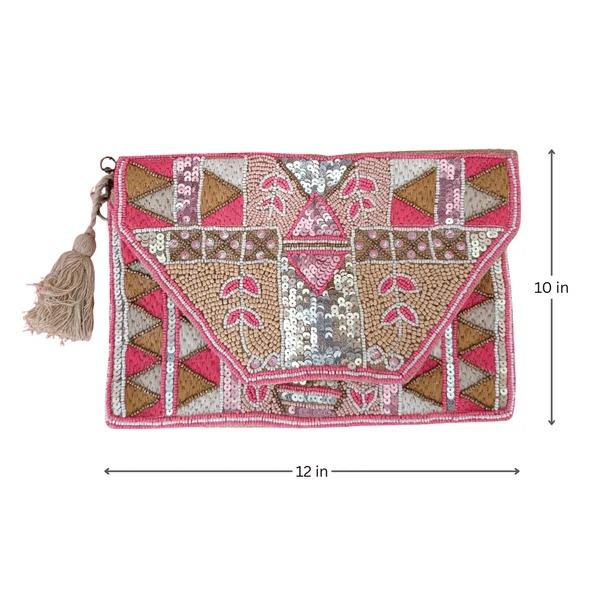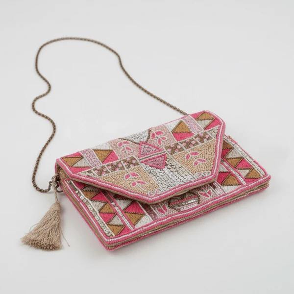 Bolso y Cartera Geométricos Hechos a Mano con Cuentas de la Marca Rivara, Proveedor Indio, Diseño Étnico, Bolso de Noche para Mujer, Disponible para la Venta