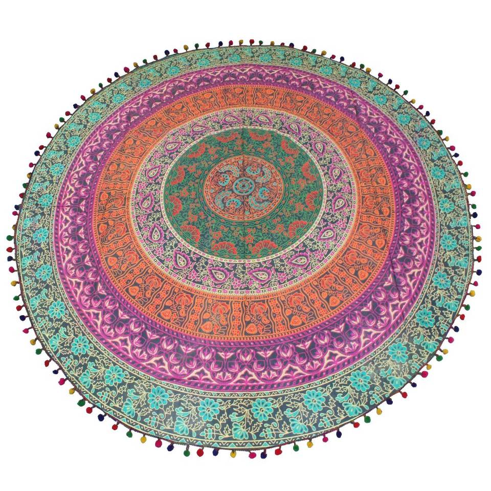 Tapiz indio, tapiz bohemio, toalla, esterilla de Yoga, manta redonda de playa de Mandala, manta redonda de playa de Mandala