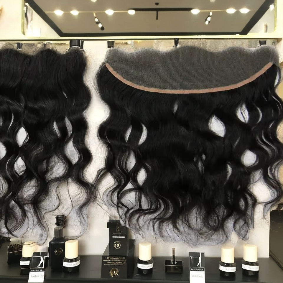 Proveedor de cabello Remy de templo indio de la India Cutícula Alagiend Frontales de encaje transparente Fabricación manual de un solo donante Producto de marca