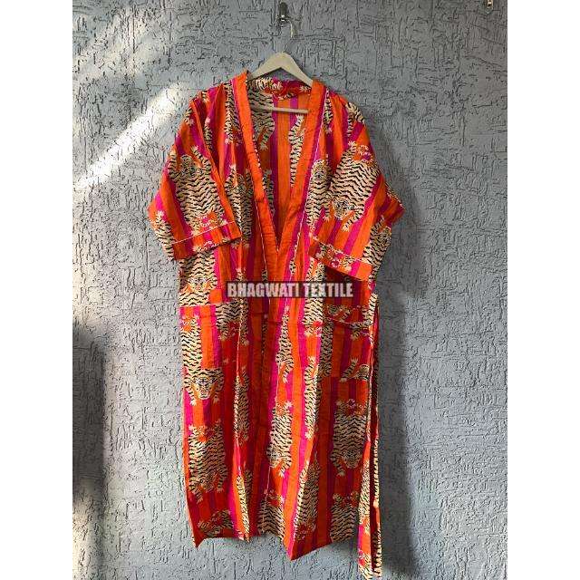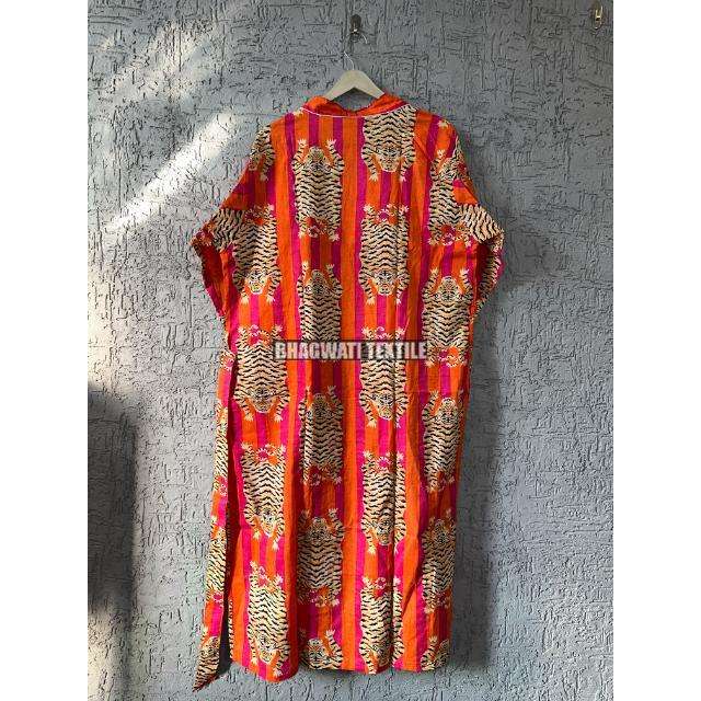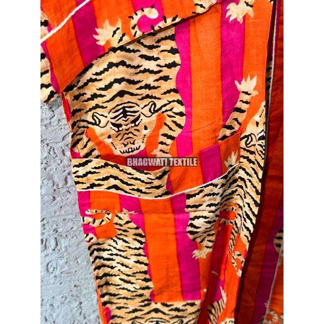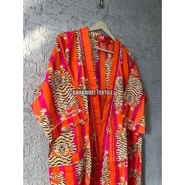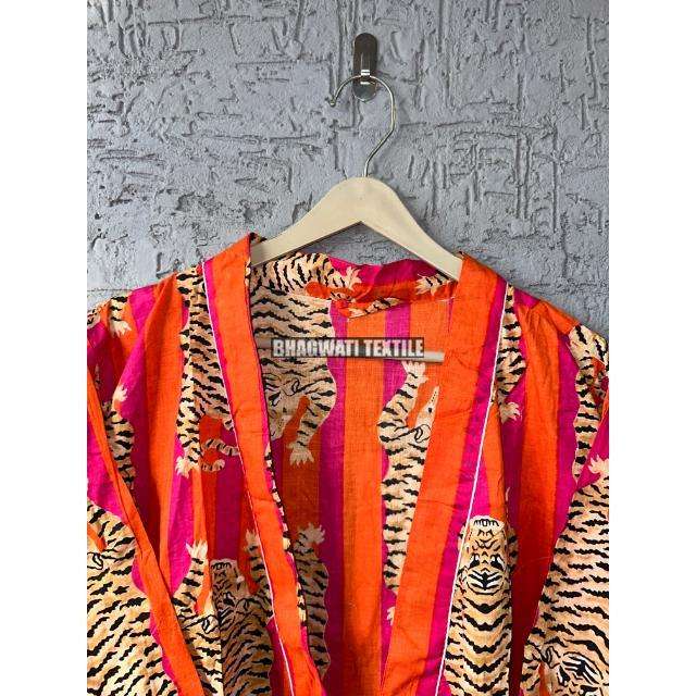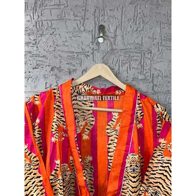 Kimono de algodón con estampado de tigre indio para mujer, albornoz para cubrir la playa, Kimono estampado a mano