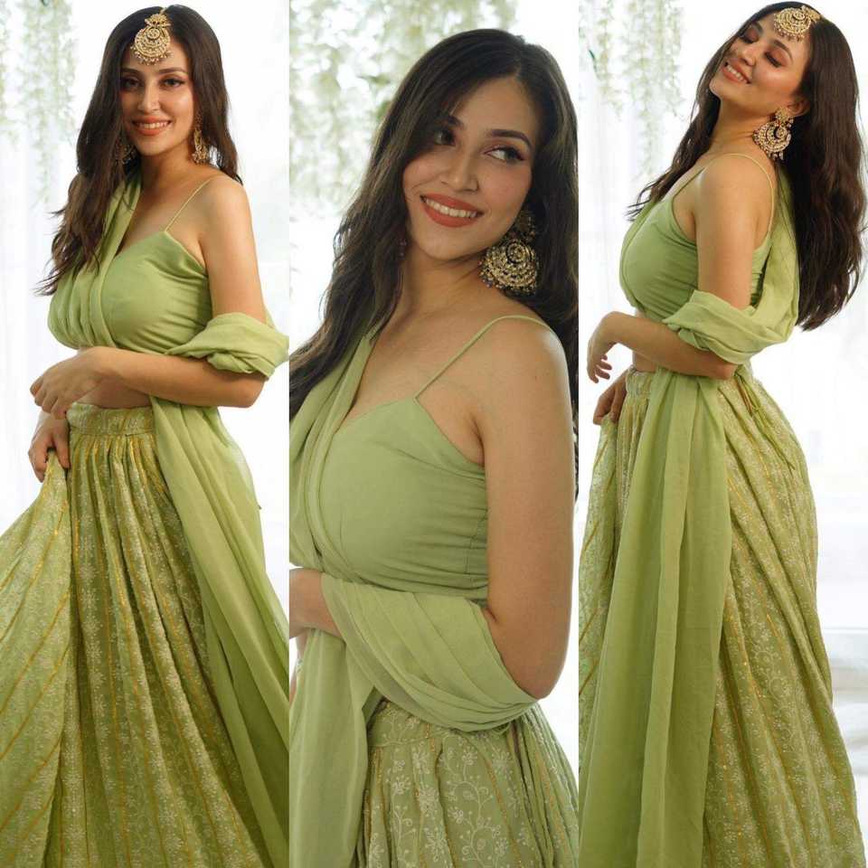 Indio tradicional Georgette Lehenga & Blusa con Dupatta