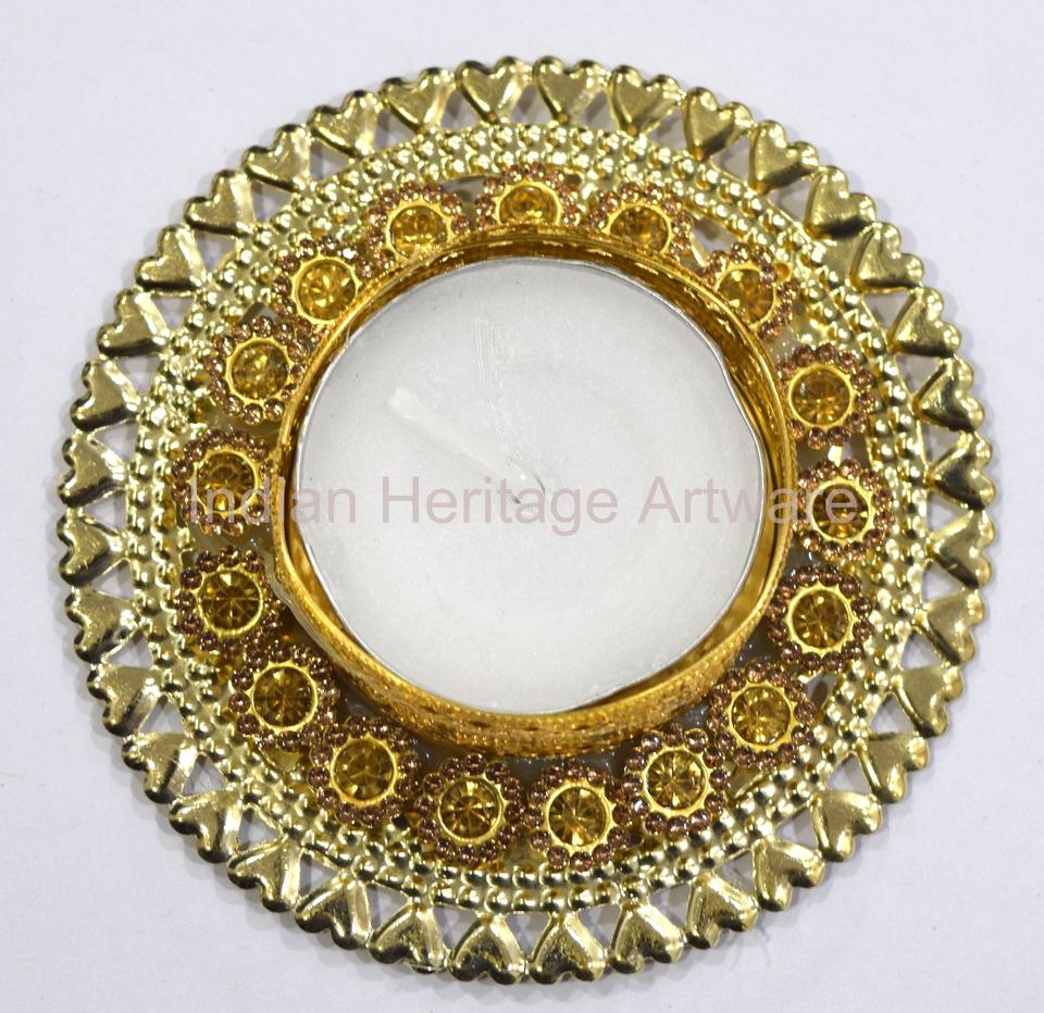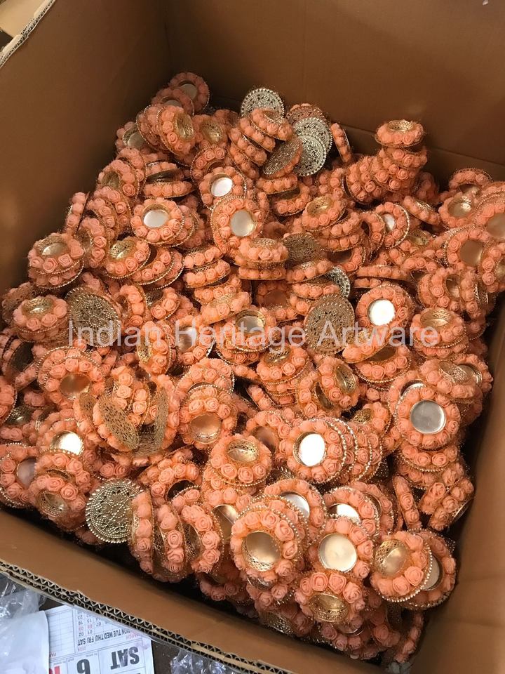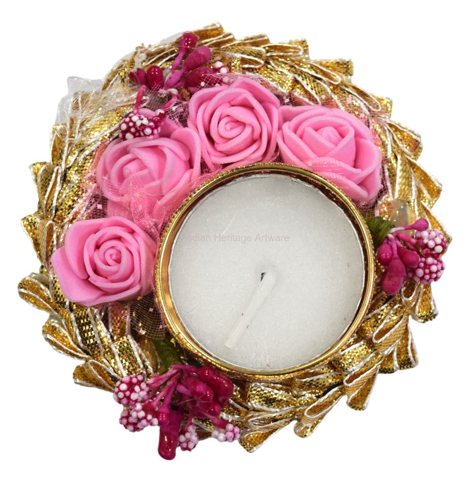 Portavelas de Metal Hecho a Mano Tradicional Indio con Diseño de Flor de Durazno, Decoración para Interiores y Exteriores, Decoración para el Hogar Diwali IHA