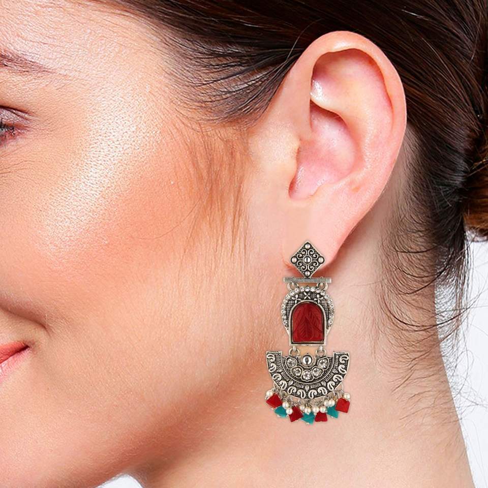 Diseño:Antiguo Boho hecho a mano vintage oxidado pendientes de plata