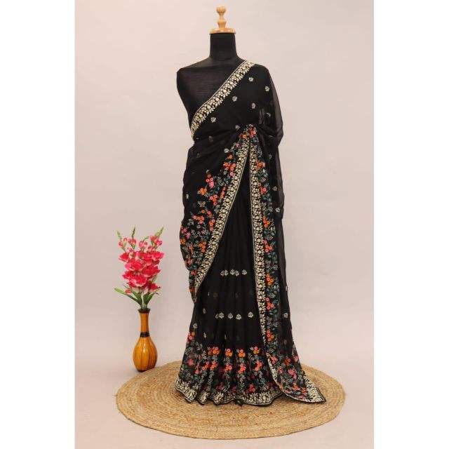 Nombre del producto:Mejor tela pura Georgette seda Saree con blusa