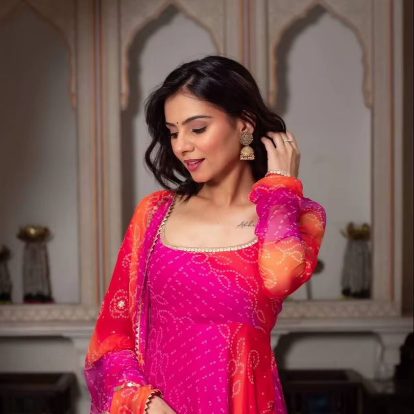 Nombre del producto:Faux Georgette Digital Print Anarkali Top & Pant Con Dupatta